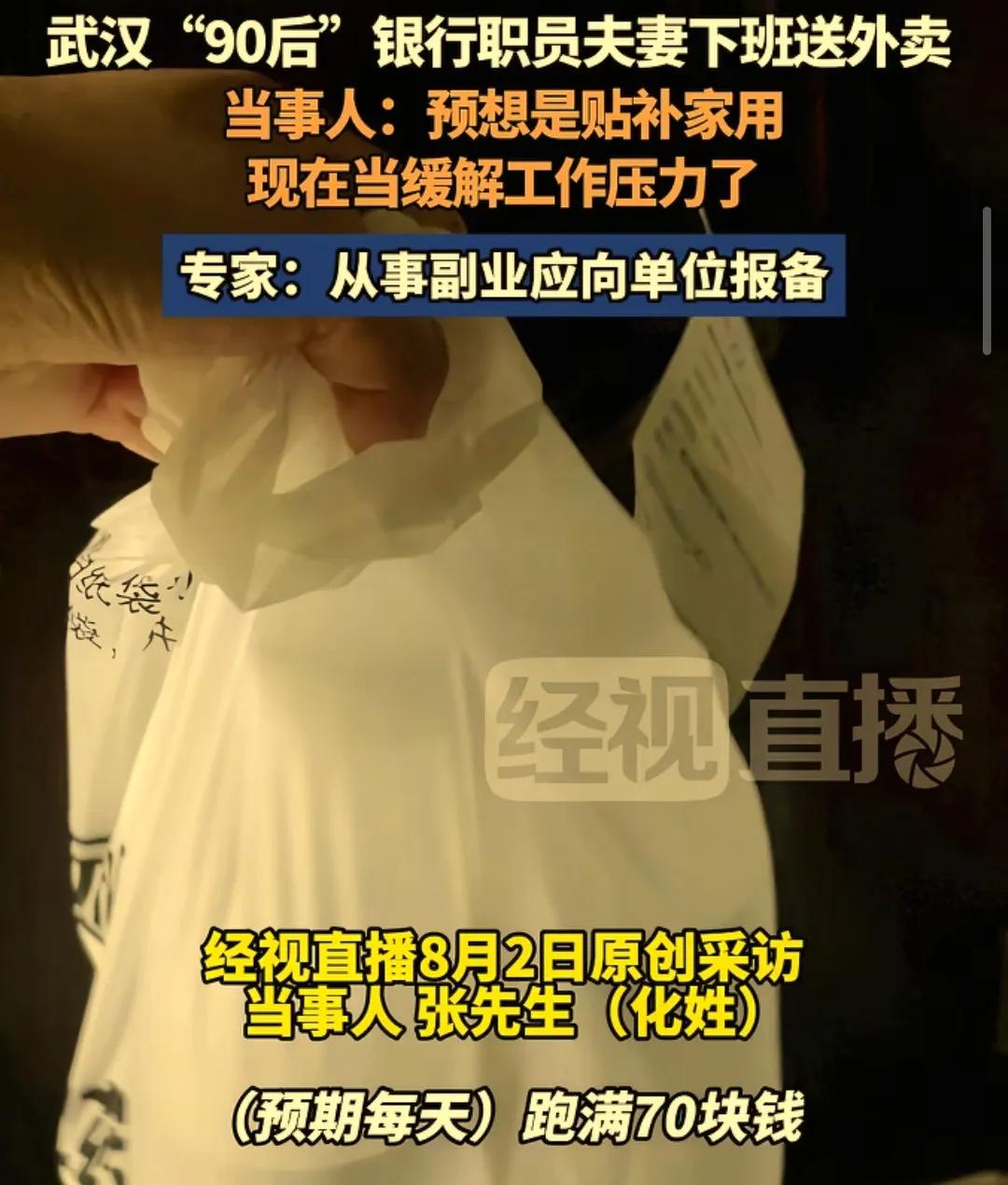 武漢的張先生和妻子李女士,白天是穿著制服點鈔的銀行職員,晚上換上便裝就成了外賣騎手。