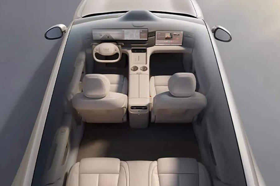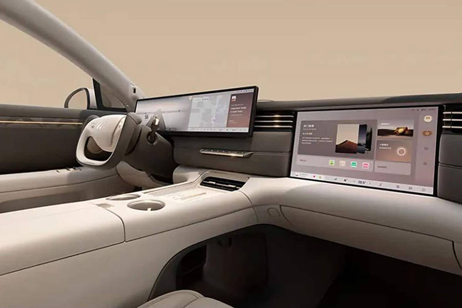 內飾方面,全新智己LS6依然采用三塊屏,主駕與中控的5K高清屏幕貫穿相連,副駕娛樂屏為3K屏幕,整個臺面很有層次感,空調出風口貫穿式設計,并展現出金屬質感。此外,新車保留了一定的物理按鍵,屏幕下方依然為無線充電面板,下部提供儲物空間,中控臺上方提供懸浮式揚聲器。值得一提的是,新車依然會提供半幅式方向盤。