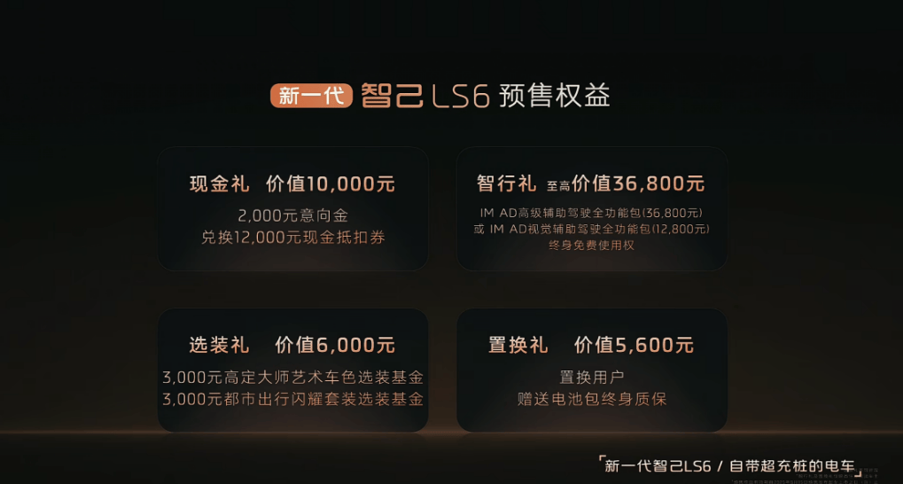 2025年8月15日,新一代智己LS6正式開啟預售,新車共推出包括純電和增程兩種動力四款車型,預售權益價為20.99-27.99萬元,同時,預售期間訂車將享受10000元現金禮、36000元智行禮、6000元選裝禮和5600元置換禮。作為全新車型,新車采用了全新的設計語言,并針對內飾進行升級,并新增了增程版車型,將搭載全新的“恒星”超級增程系統,純電續航超過450公里,綜合續航超過1500公里。同時,發布會上宣布了新一代智己LS6將于9月10日正式上市。