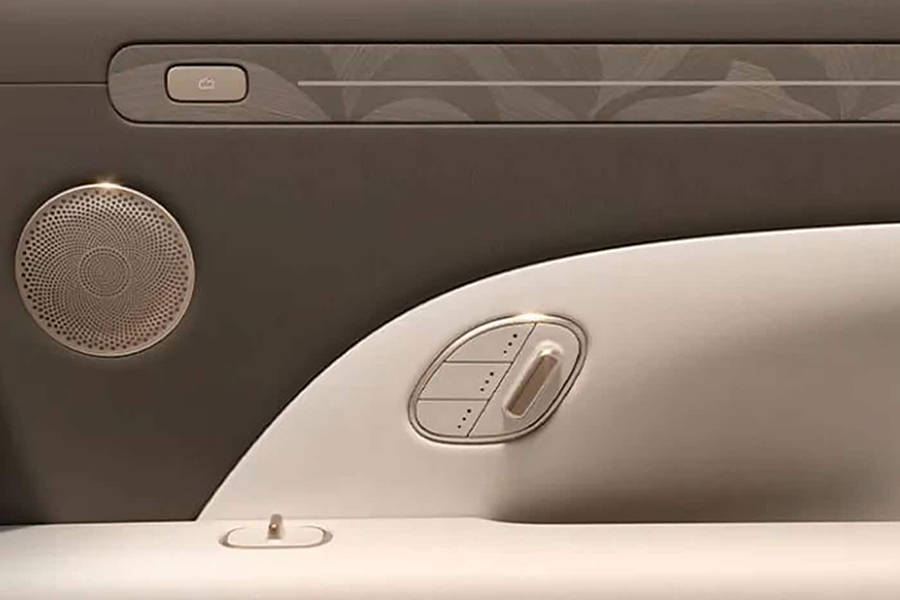 官方強調全新車型將提供超大的后排空間,并且還有全景天幕。車內整體注重細節的刻畫與打造,車門有更加精致的紋理裝飾、揚聲器裝飾,同時車門提供加熱、通風等物理按鍵,更加便捷。