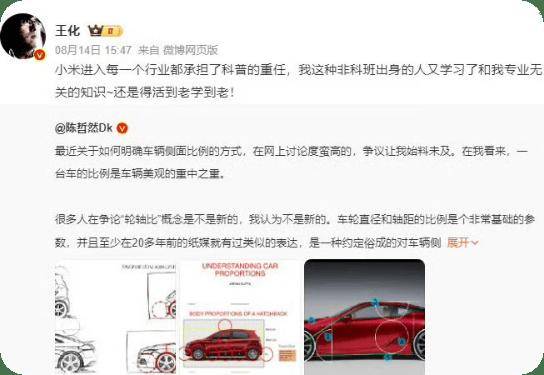 對于@陳哲然Dk 發(fā)表的輪軸比看法,小米集團(tuán)公關(guān)部總經(jīng)理@王化 也轉(zhuǎn)發(fā)了該博文,并評論表示,“小米進(jìn)入每一個行業(yè)都承擔(dān)了科普的重任,我這種非科班出身的人又學(xué)習(xí)了和我專業(yè)無關(guān)的知識~還是得活到老學(xué)到老!”