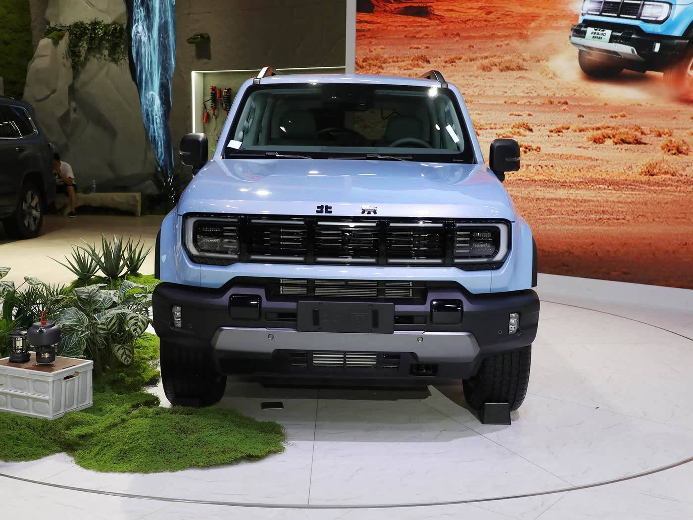 BJ40可以說是國產硬派SUV陣營中的老將,它延續了更接近美式越野的方正車身,直瀑式中網、外露鉚釘、突出輪眉等設計元素很有歷史感,給人的視覺沖擊力依舊在線。但從今天的審美來看,這種“硬”更多是傳統而不是突破。