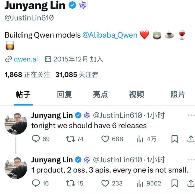 9月23日,阿里Qwen團隊的負責人在X平臺上透露,阿里Qwen團隊今晚要發布6個“新東西”,1個產品,2個開源模型,3個API接口。
