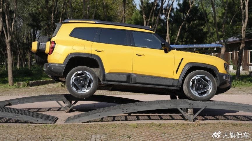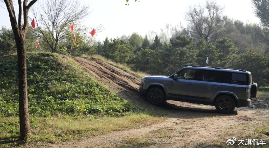 27°的接近角、31°的離去角,這樣的數(shù)值顯然深藍(lán)G318面對(duì)陡坡時(shí)具有更好的通過性,加上一把中央無極差速鎖、一把磁吸式機(jī)械差速鎖的性能加成,當(dāng)車輛處于泥濘路段時(shí),四輪扭矩分配更加均衡,同時(shí)配合最大316kW的電機(jī)總功率,脫困自然更為輕松;而方程豹 鈦7并未搭載差速鎖,這也是其面對(duì)泥濘路況不得不依靠其360kW的電機(jī)總功率使出“力大飛磚”技能經(jīng)過兩次嘗試勉強(qiáng)脫困的根本原因。相信測(cè)試如果再度增加難度的話,鈦7極有可能“深陷其中”,同時(shí)24°的接近角以及25°的離去角,也讓鈦7的爬坡極限相較深藍(lán)G318更顯平庸。