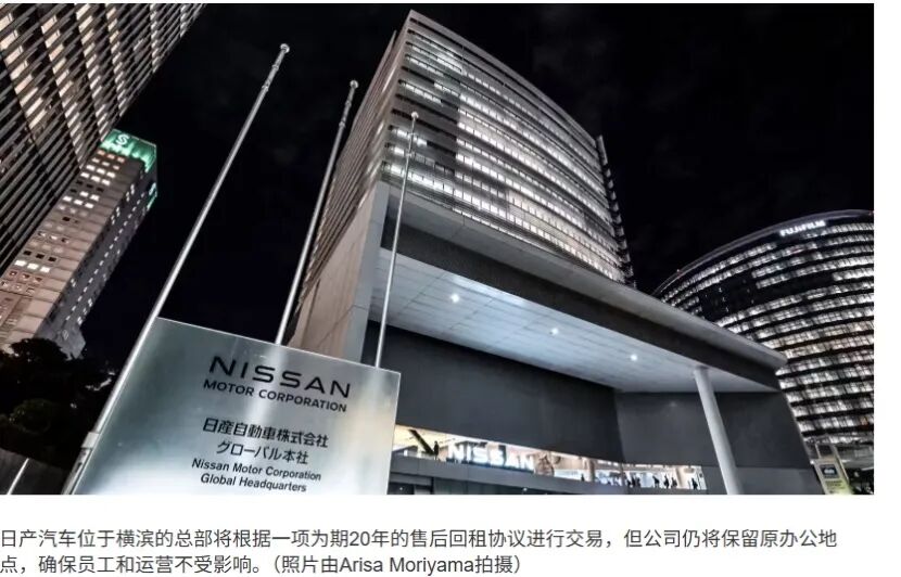五月就提出的賣樓計劃,這次真的要實行了。據(jù)《日本經(jīng)濟新聞》報道,陷入經(jīng)營困難的日本汽車制造商日產(chǎn)公司11月6日宣布,將出售位于橫濱的總部大樓,價格為970億日元(約合45億元人民幣)。這些資金將用于改善公司的財務狀況。據(jù)報道,出售手續(xù)將于今年12月完成,出售后日產(chǎn)公司仍將繼續(xù)使用總部大樓,但需按期繳納租金。