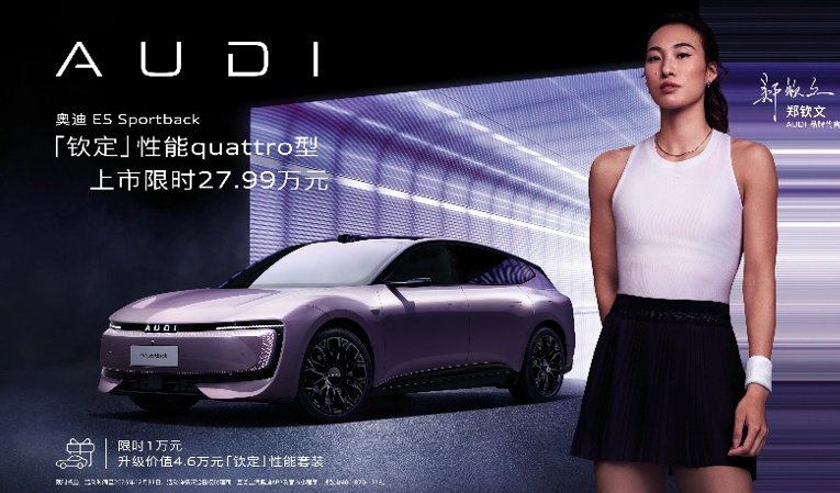 本次車展,上汽奧迪聚焦新能源賽道精準發(fā)力,以敏捷的行動,回應用戶期待,重磅發(fā)布融合AUDI品牌代言人鄭欽文個性主張與冠軍精神的特別版車型——奧迪E5 Sportback 欽定性能quattro型,限時臻享價27.99萬元。用戶僅需在先鋒quattro型的價格基礎上額外增加一萬元,即可享受價值近五萬元的頂級配置組合,輕松擁有極致可靠的駕馭和舒適豪華的體驗。對于下單欽定性能quattro型的用戶,品牌還將額外贈送價值5,000元的奧金商城積分或AUDI原裝充電墻盒權益。