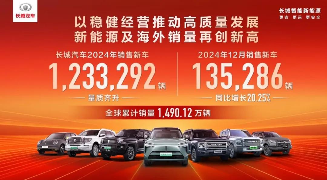 長城汽車每次的銷量成績都受到格外關注,部分原因在于本身就是“自主五虎”之一,自帶光環。還有部分原因在于,長城汽車銷量的增長勢頭沒有達到很多網民的預期,遭遇種種批評。據悉,長城汽車2024年總銷量達123.33萬輛,整體銷量幾乎與去年持平,這也是長城汽車連續兩年銷量超過120萬輛。